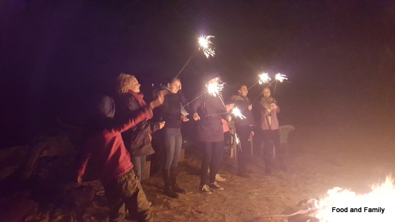 But the angels had this taken care of too. We decided to keep going with the usual plans, bonfire, braai fire, tables and food carried outside, and once it was dark and we were ready to carry out our lanterns, the wind eased; not completely but enough for it to be fun sitting outside around a bonfire, so that kids with colds could stay out long enough for sparklers and soups, so that we could be thoroughly smoked, and even catch a glimpse of the almost full moon appearing behind scudding clouds.